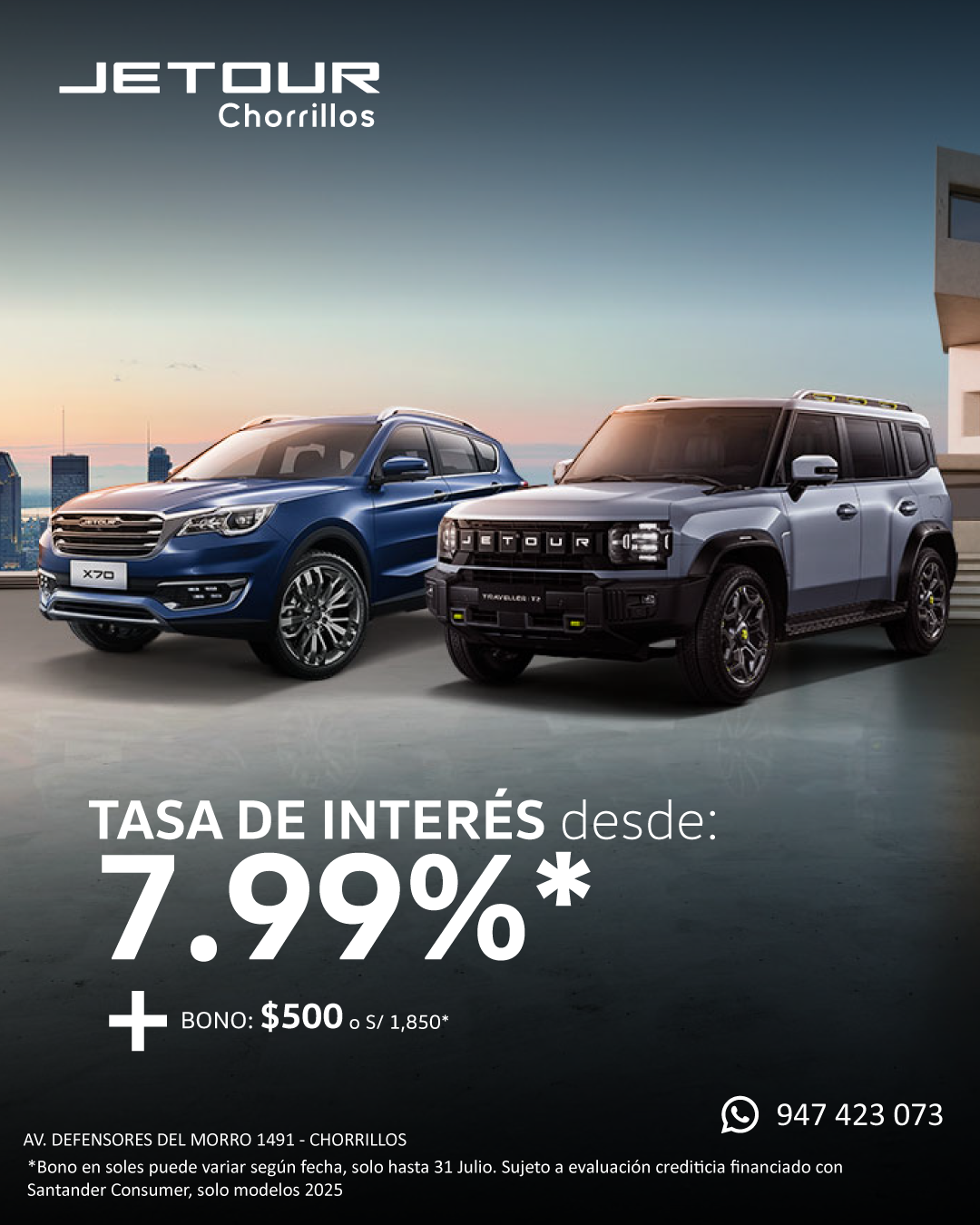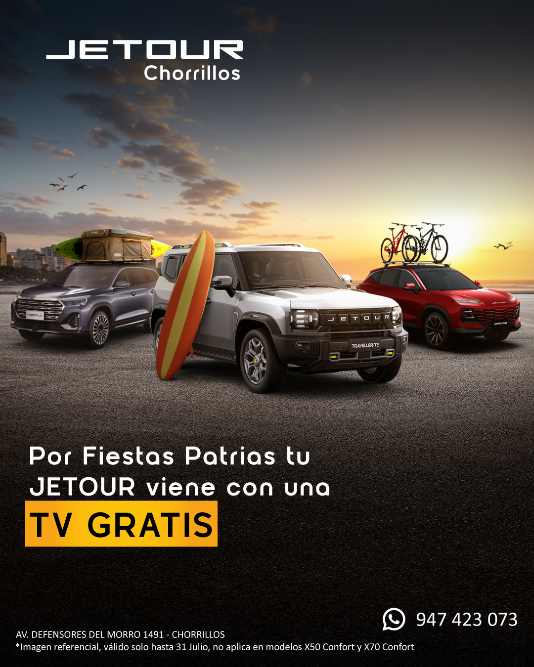 Si aún no te decides por un modelo Jetour, nos puedes visitar en nuestro local de Chorrillos y podrás probar varios modelos.